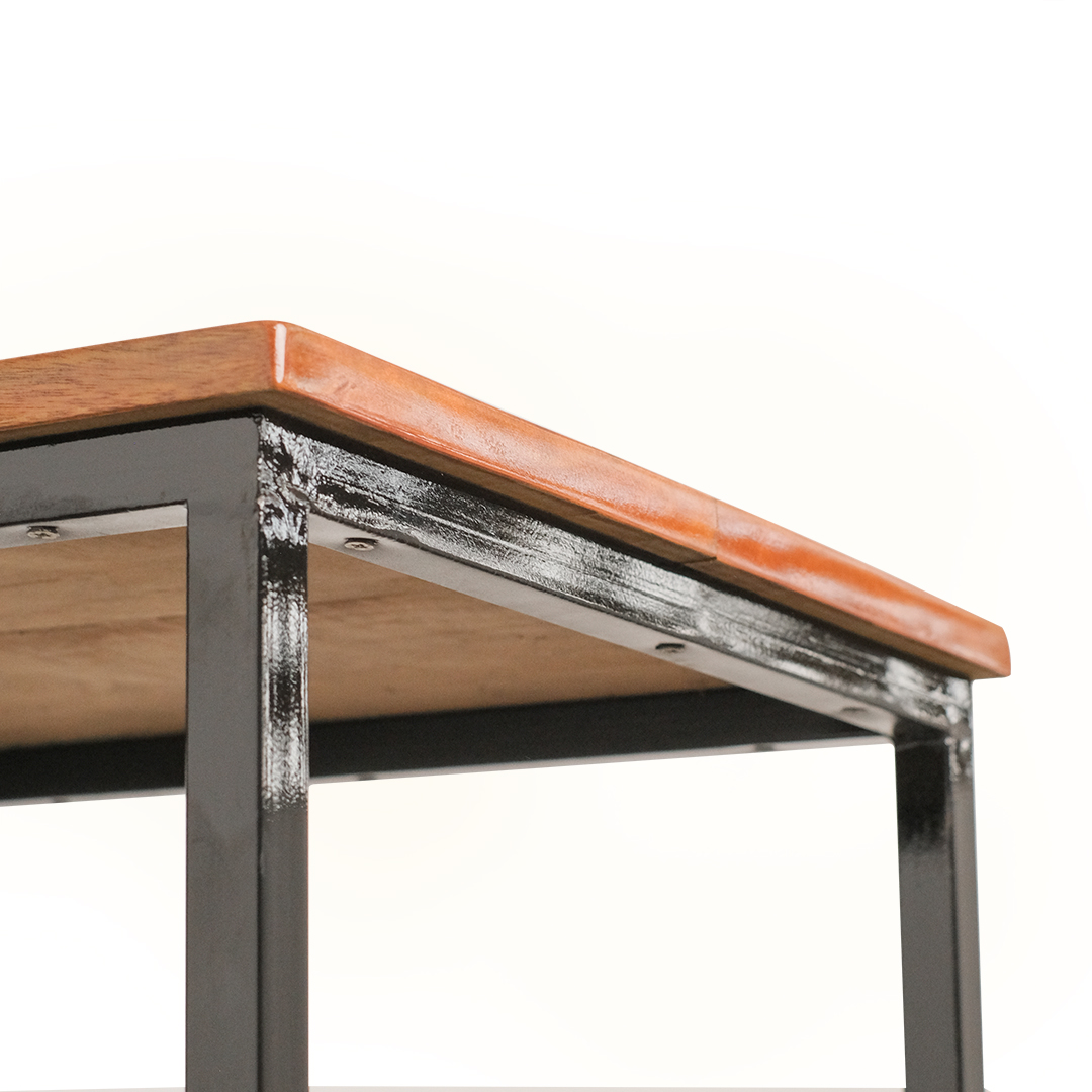 Meja Single ini adalah kombinasi antara keindahan alami kayu mindi dan kesan tangguh industri dari besi hollow, menciptakan sebuah produk yang stylish dan fungsional untuk kafe dan rumah makan Anda