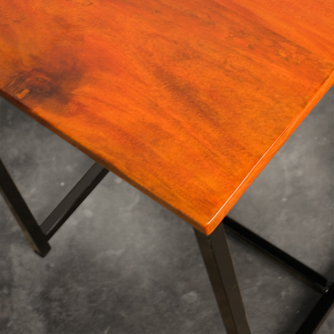 Meja Single ini adalah kombinasi antara keindahan alami kayu mindi dan kesan tangguh industri dari besi hollow, menciptakan sebuah produk yang stylish dan fungsional untuk kafe dan rumah makan Anda